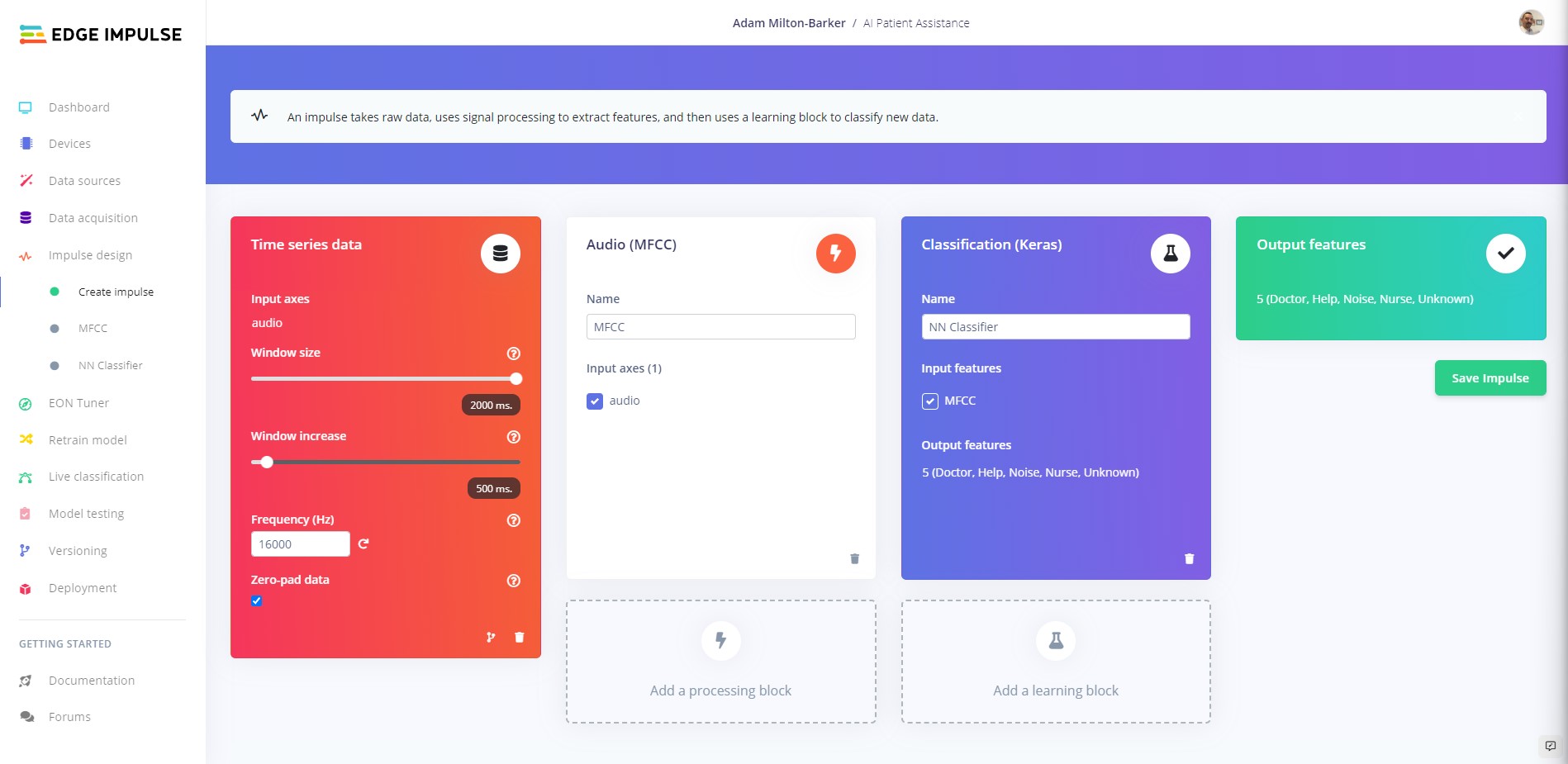 Now click Save impulse.